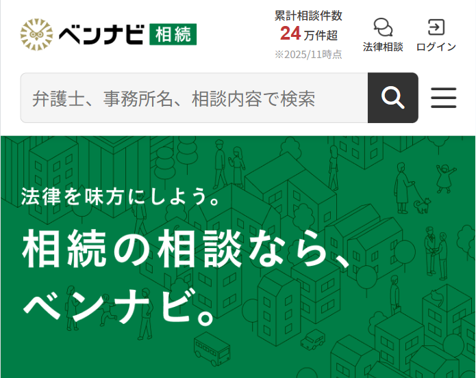 ベンナビ相続は、国内最大級の弁護士検索ポータルサイトです。