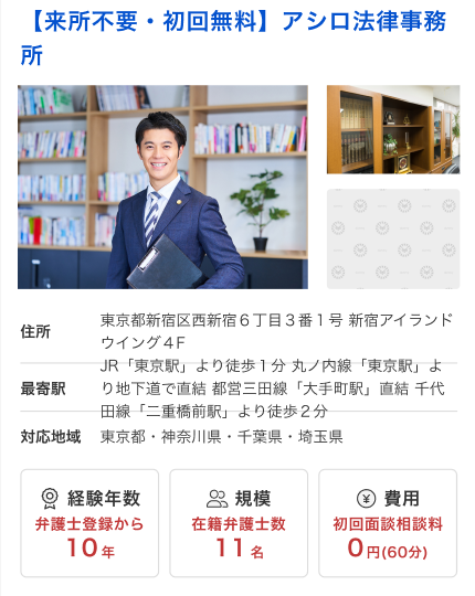 - 秘密厳守・無料相談可能な事務所を多数掲載 ※様々な条件で絞込検索可能